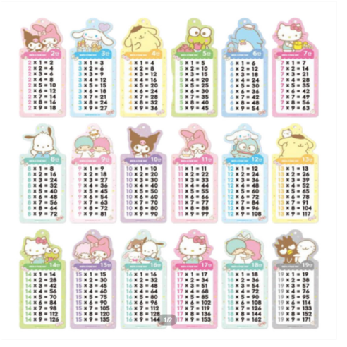 8000 산리오캐릭터즈 구구단 카드 18매 구구단벽보 산리오구구단카드 구구단 산리오 산리오시계놀이 구구단카드 산리오시계 산리오메모지접기